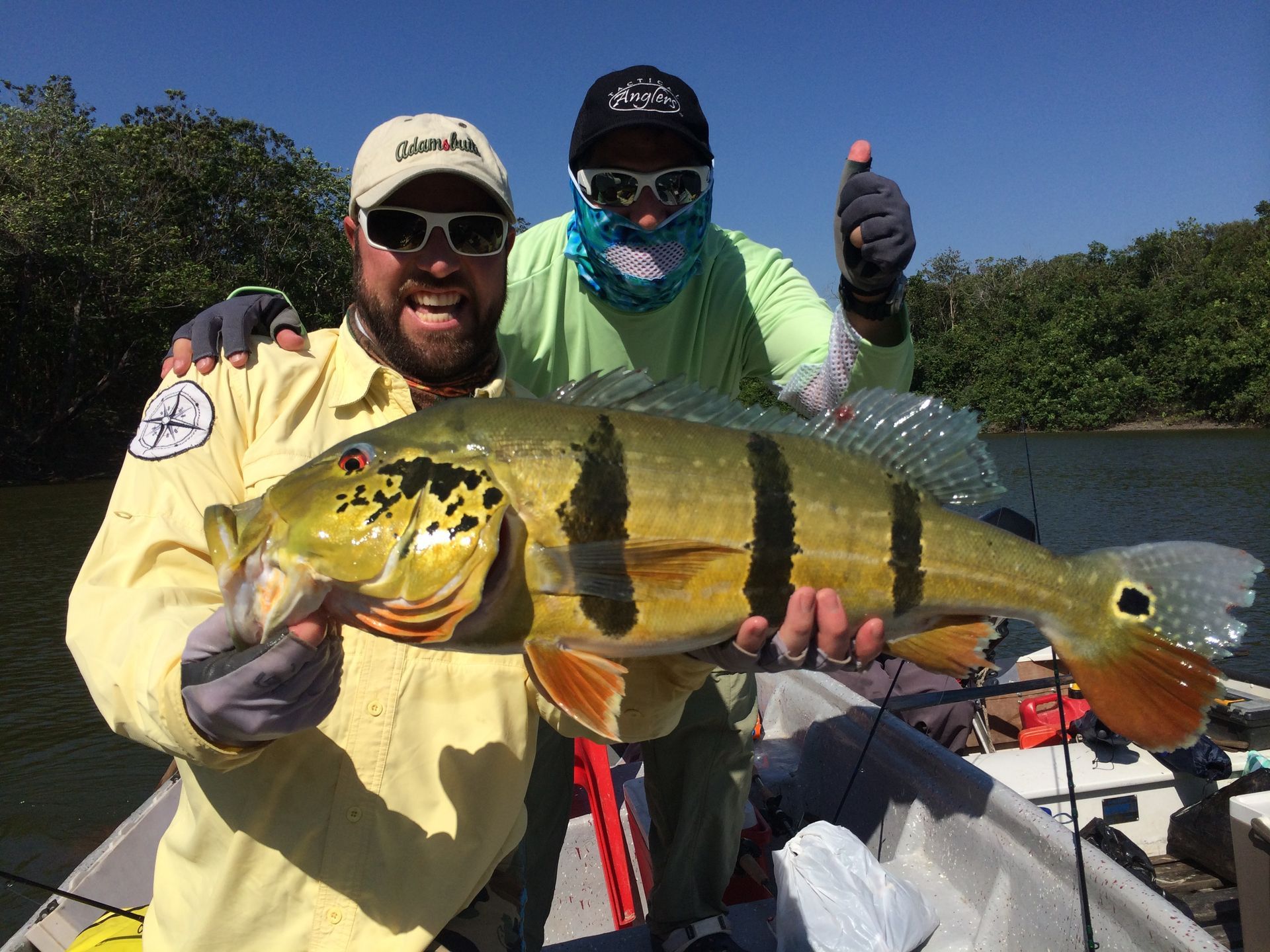 The first trip to Colombia was wild. We started with a crazy ride to the Rio Miel. From there it was a quick stop at the Rio Claro. After that we flew to Puerto Carreño to drive five hours to fish for peacock bass from a boat named Shirly. Working conditions were pushed but I had an assistant helping me out. (pictured)